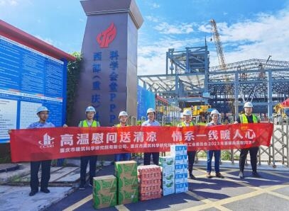 近日,重慶設計集團市建科院公司黨委副書記、總經(jīng)理、董事張雪芹同志赴科學城分院承接鋼結構監(jiān)測業(yè)務的“西部(重慶)科學城科學會堂”項目,慰問在高溫酷暑中堅守崗位的一線職工,為他們送去防暑降溫用品與真誠關懷。