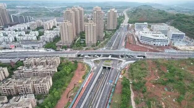 方悅立交工程位于兩江新區(qū)水土新城東南側(cè)、悅復(fù)大道與方正大道交匯處,是水土新城內(nèi)暢外聯(lián)重要交通節(jié)點(diǎn)工程。該項(xiàng)目三層菱形立交,分為方正大道上跨、悅復(fù)大道下穿、中間層渠化信控交叉口,其中方正大道改造長度為786.99m,悅復(fù)大道改造長度為789.438m,共設(shè)置一座170.11m跨線橋97.5m地下通道、四條度為1.865km輔道一座可供行人四象限通行的人行天橋。項(xiàng)目通車后,將極大緩解兩江新區(qū)水土新城思源片區(qū)交通擁堵狀況,方便周邊企事業(yè)單位和群眾出行。