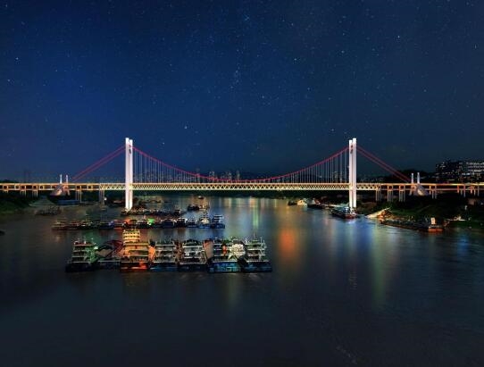 黃桷沱長江大橋?yàn)橹貞c快速路八聯(lián)絡(luò)線咽喉要道,大橋全長1260m,為單跨懸吊雙塔三跨連續(xù)鋼桁梁懸索橋,采用雙層橋面布置,上層為雙向6車道城市快速路,下層中央預(yù)留雙向軌道,兩側(cè)為雙向4車道城市主干路,為世界在建最大跨徑路軌兩用懸索橋,也是市建科院公司承接的重大監(jiān)理項(xiàng)目之一。