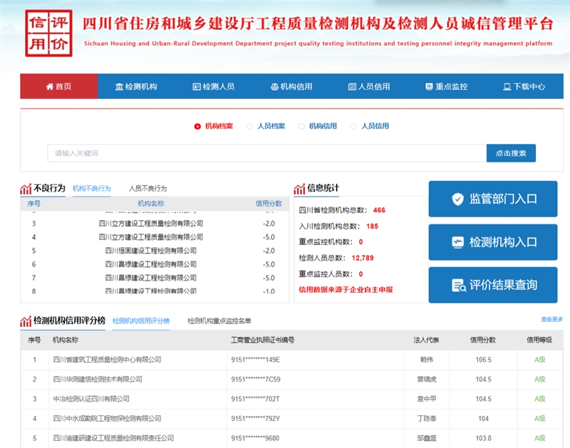 檢測(cè)機(jī)構(gòu)信用評(píng)分排名是四川省住房和城鄉(xiāng)建設(shè)廳對(duì)全省工程質(zhì)量檢測(cè)機(jī)構(gòu)及檢測(cè)人員誠信行為進(jìn)行全面評(píng)估的結(jié)果。四川渝建研公司憑借在檢測(cè)技術(shù)實(shí)力、服務(wù)質(zhì)量、誠信經(jīng)營等方面的優(yōu)異表現(xiàn)成功躍居榜單前五,彰顯了在工程質(zhì)量檢測(cè)行業(yè)的領(lǐng)先地位和卓越信譽(yù)。