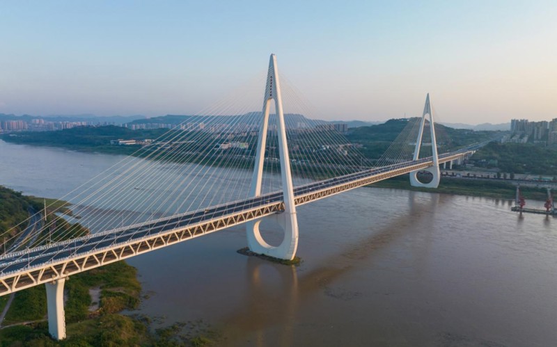 白居寺長江大橋項(xiàng)目西起于重慶大渡口區(qū)陳家閣立交,跨越長江后,東止于巴南區(qū)內(nèi)環(huán)快速路太陽崗立交。大橋主線雙向8車道,按城市快速路時速60公里設(shè)計(jì)。該橋成功建設(shè)對于連通江畔兩岸交通起到關(guān)鍵作用,同時拉大了城市主骨架,對于重慶主城建設(shè)增添了濃墨重彩的一筆。