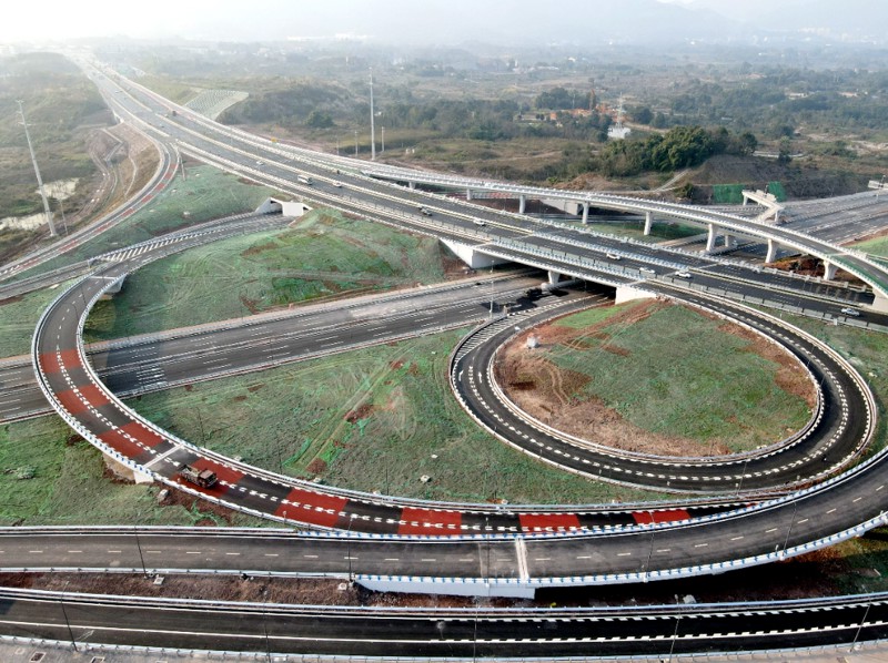渝開大道項(xiàng)目分兩期建設(shè),一期工程起于一橫線代家山立交,止于渝開大道二期工程,包含一座三岔Y形互通式立交。項(xiàng)目建成后,成為魚復(fù)園區(qū)重要的城市快速通道,市民從兩江新區(qū)龍盛片區(qū)到南岸茶園開車只需20分鐘。