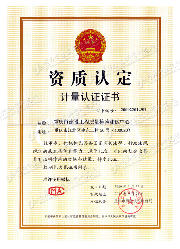 計量認(rèn)證證書