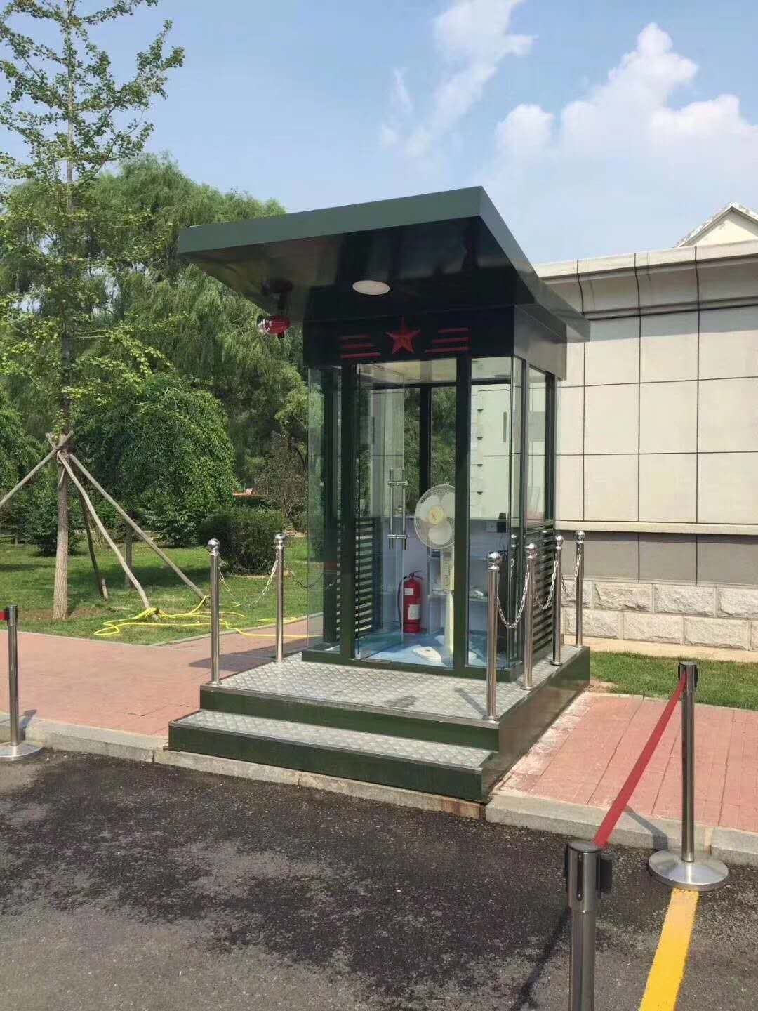 值班崗?fù)さ闹饕埞菫殇摻Y(jié)構(gòu)龍骨,起尺寸為40x60x1.5mm鍍鋅龍骨;立柱一般為堅(jiān)固耐用的型鋼,尺寸規(guī)格有80x80x2.0mm,40x80x2.0mm等等,可根據(jù)產(chǎn)品的大小不同而來(lái)決定立柱的大小;玻璃一般為8mm鋼化玻璃,具有較強(qiáng)的抗沖擊力,即使破碎也不會(huì)傷到人;地板為3mm防滑鋼板,鋪紅色地毯,四周可用鈦金立柱和紅絨繩作為裝飾件,使產(chǎn)品看起來(lái)更美觀,大氣,高檔。